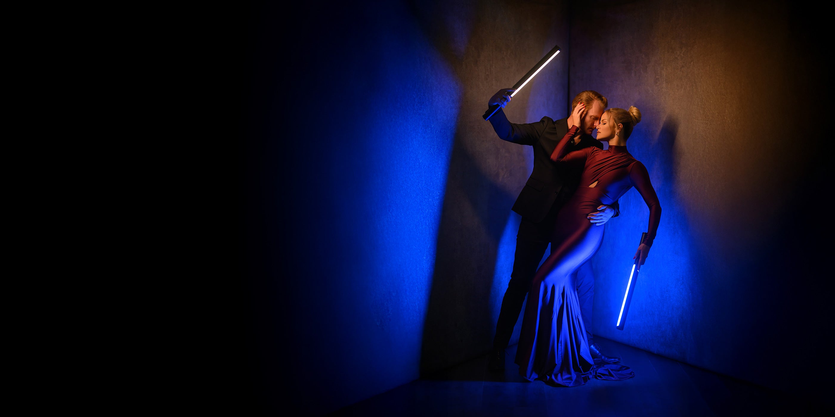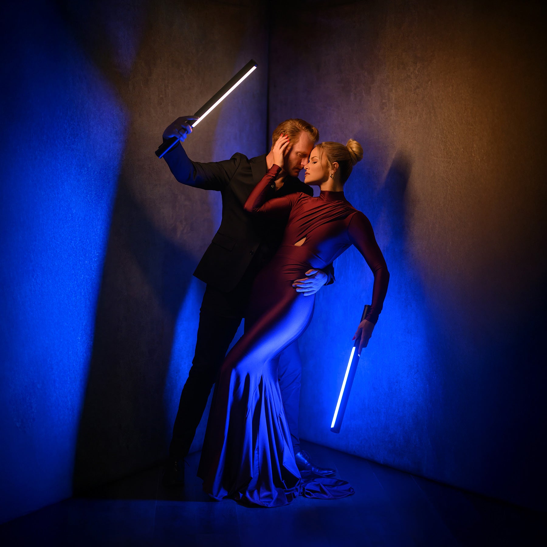 Wedding portrait behind the scenes using handheld tube light Ice Light 3