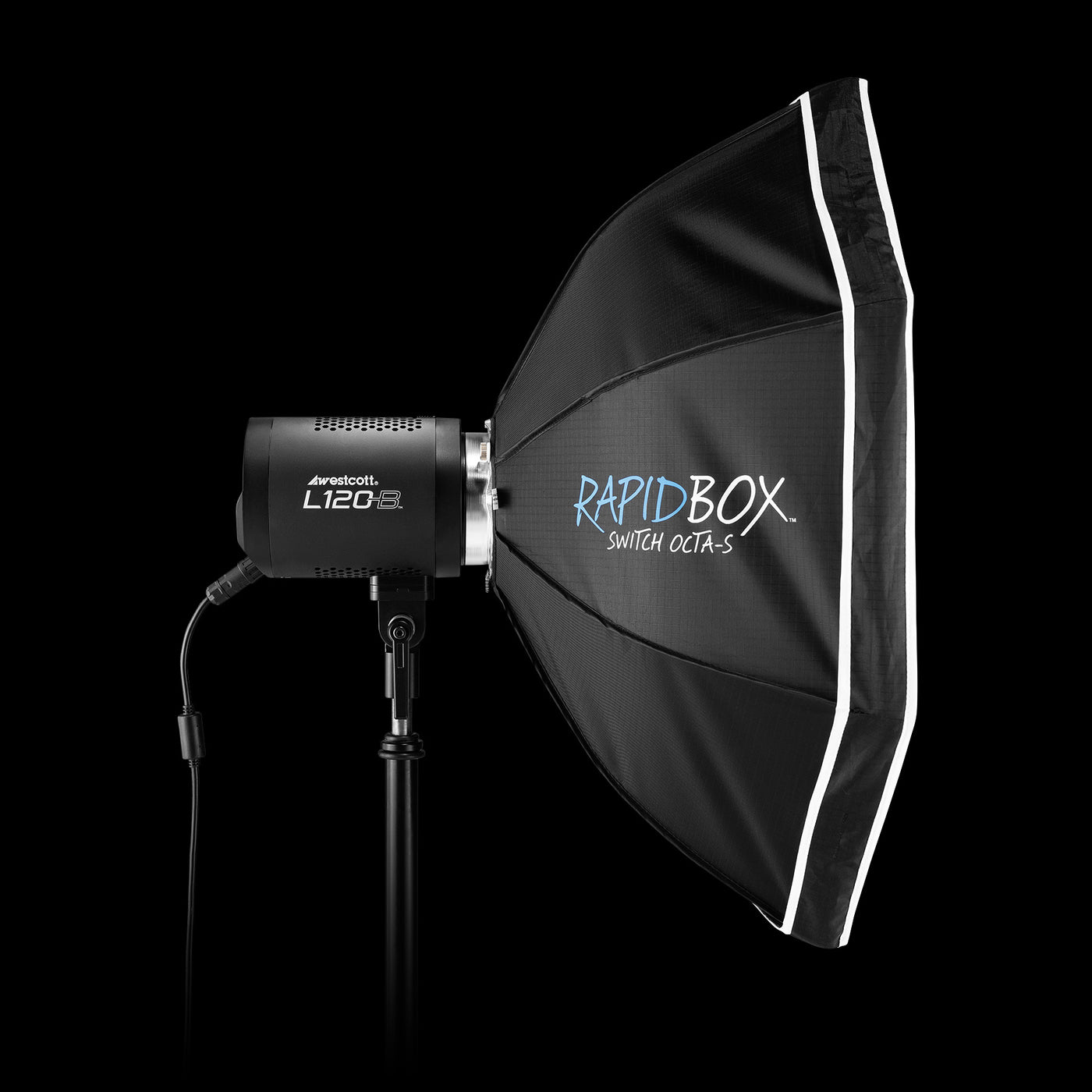 A variety of compact LED kits are available with versatile Rapid Box Switch Octa-S softboxes, batteries, and a backpack with large storage compartments for easy travel.