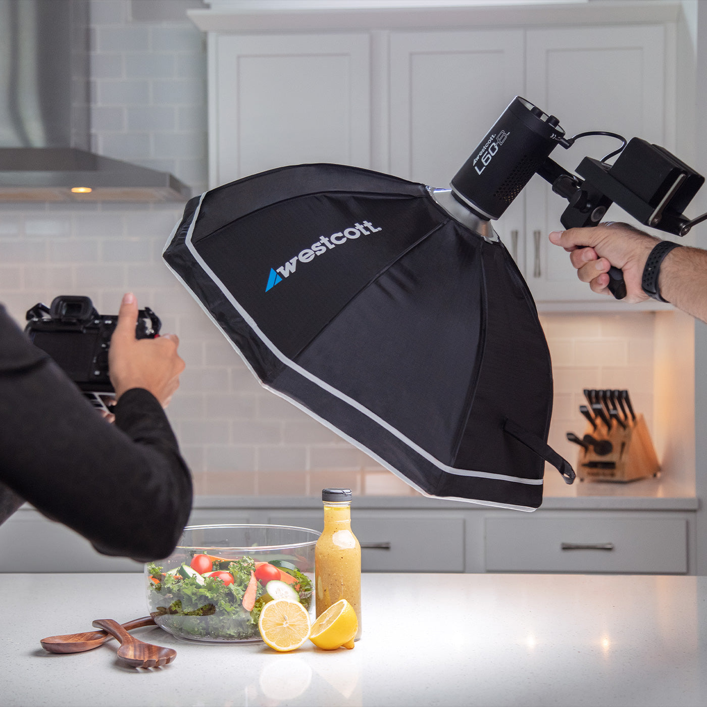 Easily extend the L120-B's capabilities with D-Tap battery power, mounting accessories, and versatile Bowens mount light modifiers, including portable Rapid Box Switch softboxes, reflectors, and umbrellas, for complete lighting control in any location.
