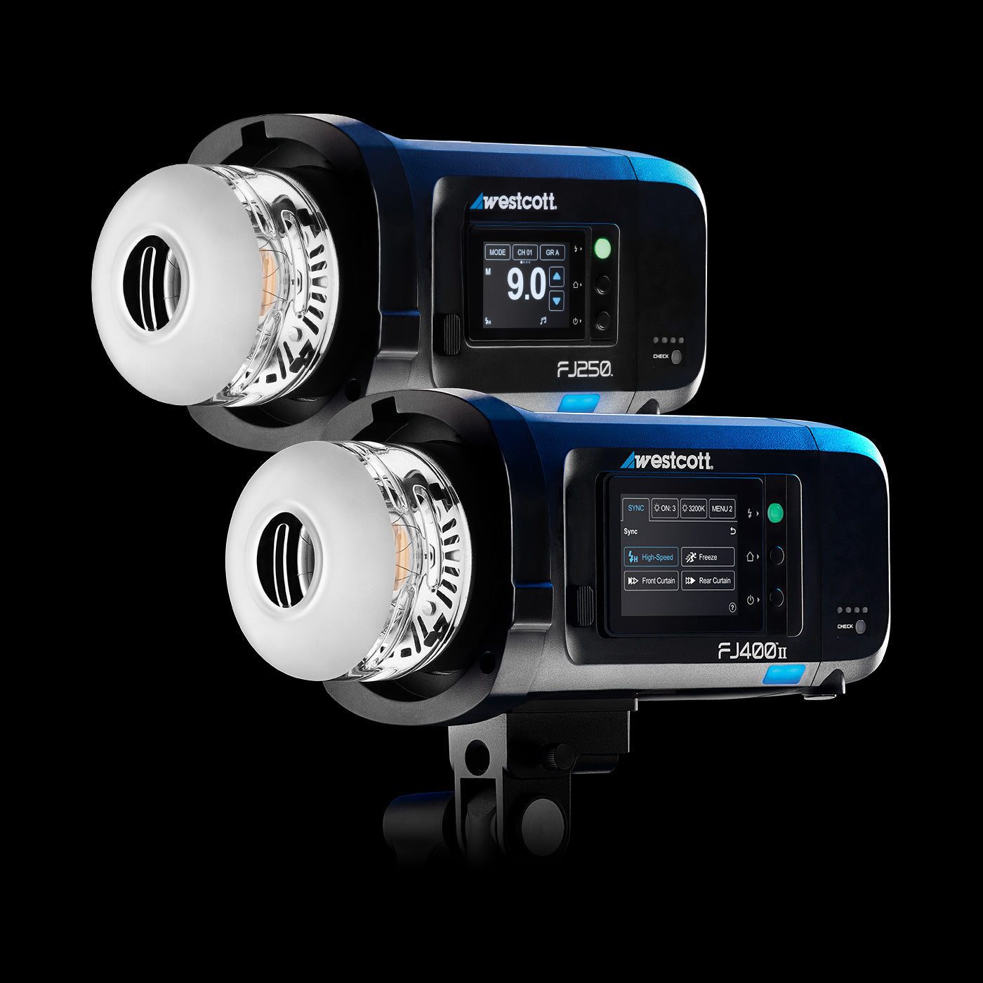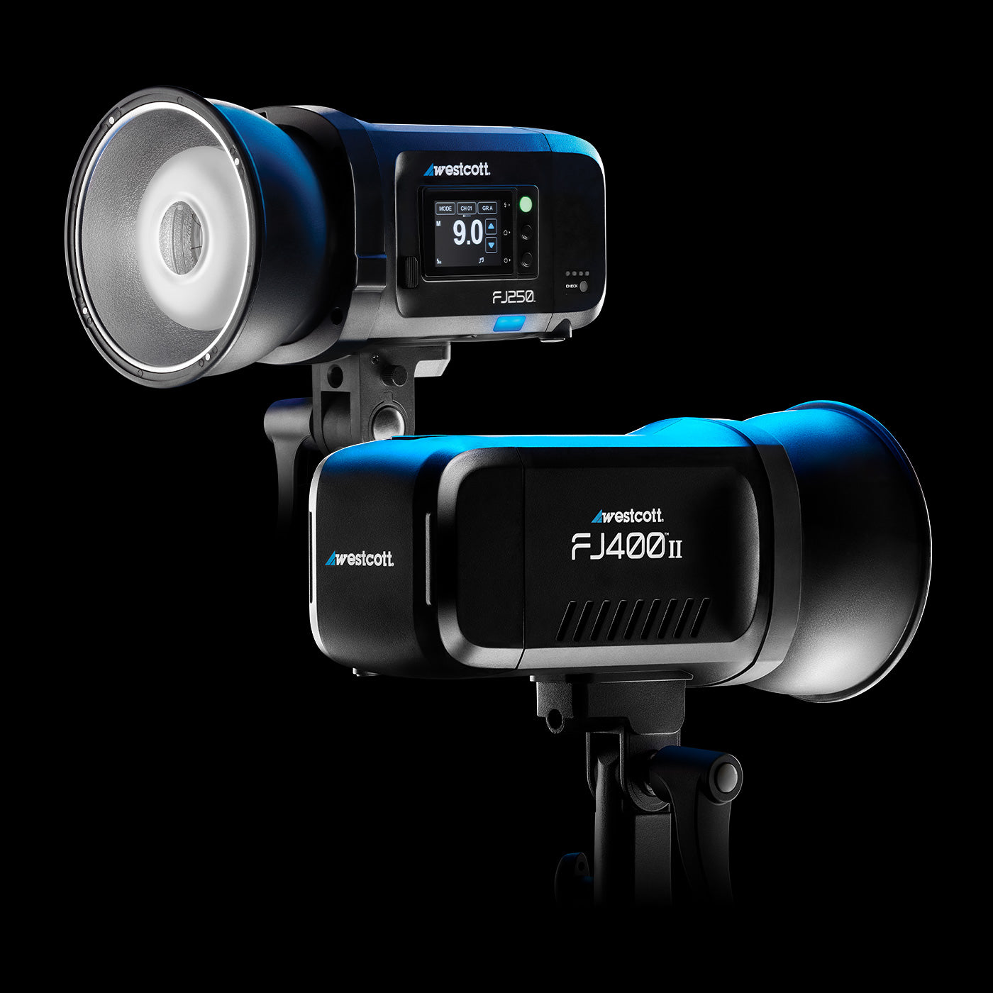 When more power is needed for outdoor portraits or shooting in bright sunlight, the FJ400 II is the go-to strobe, delivering 400Ws of output with industry-leading 0.01 to 0.9 second recycle times. Paired with the FJ250’s fast, reliable 250Ws performance and the same class-leading speed, this combination gives you flexible lighting control for portraits and multi-light setups.